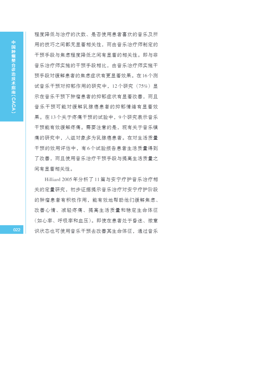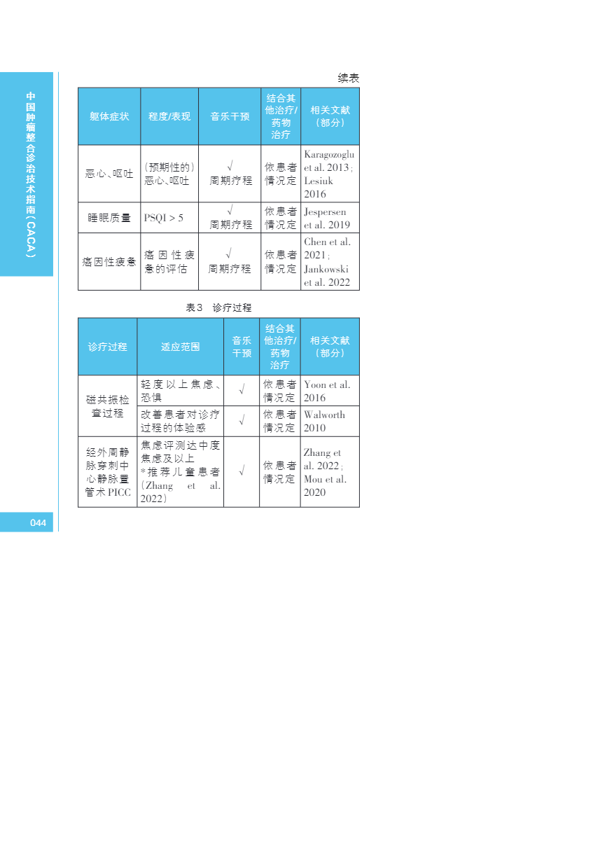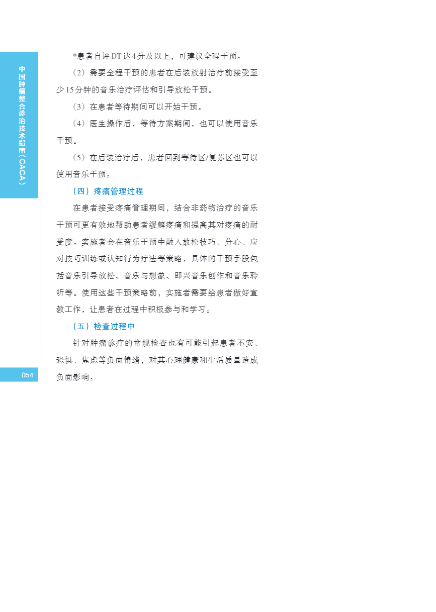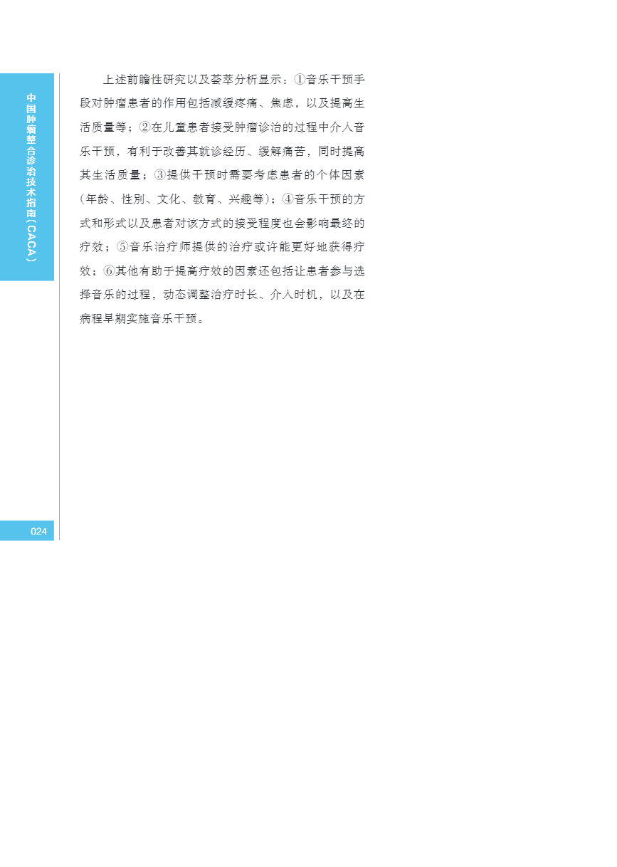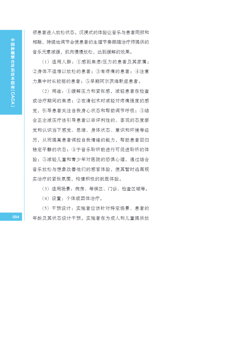 中国肿瘤整合诊治指南(CACA) 音乐干预
