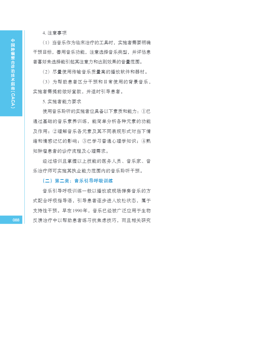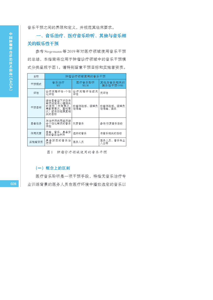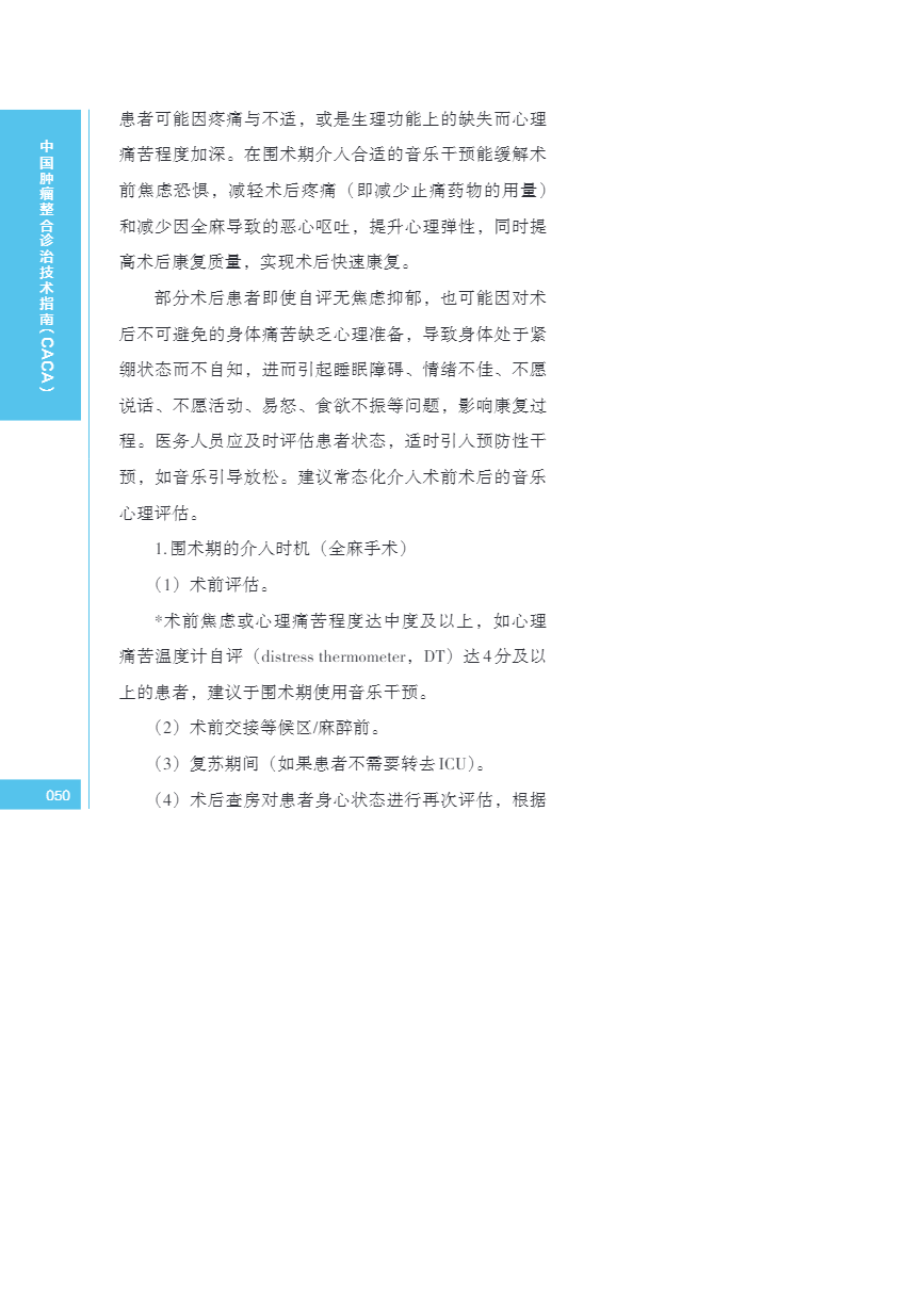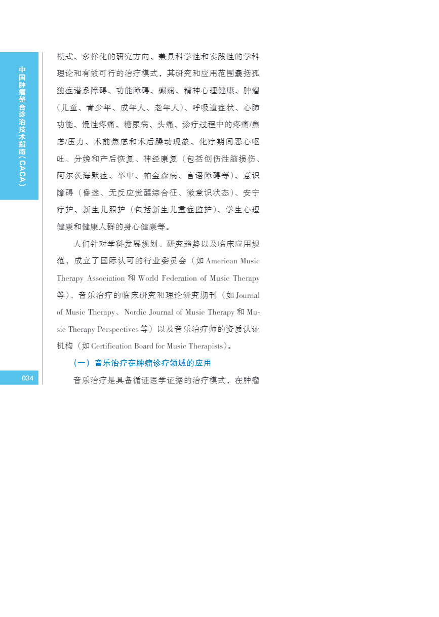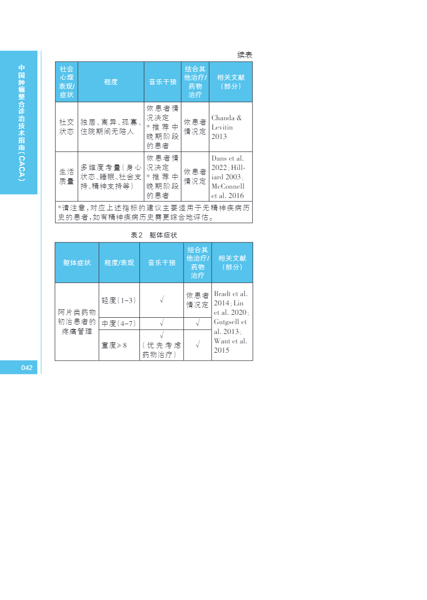 中国肿瘤整合诊治指南(CACA) 音乐干预