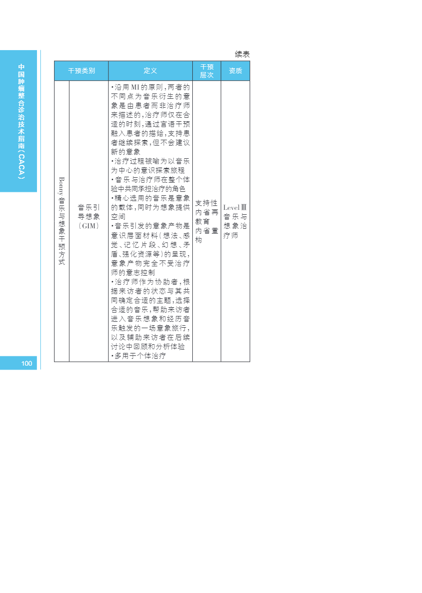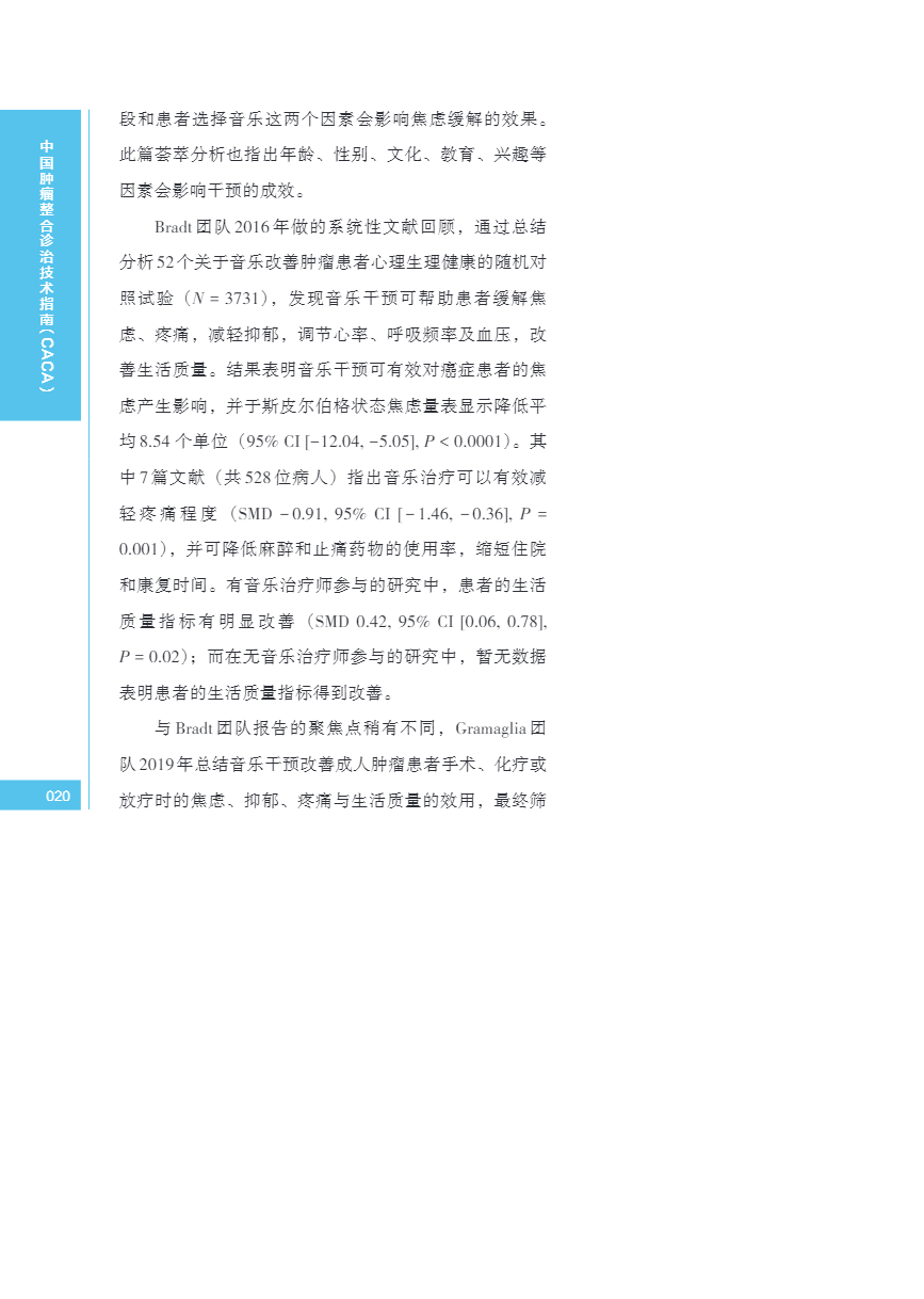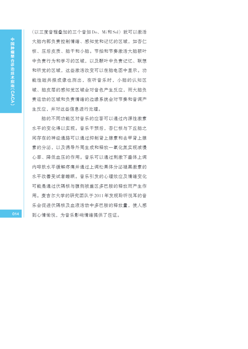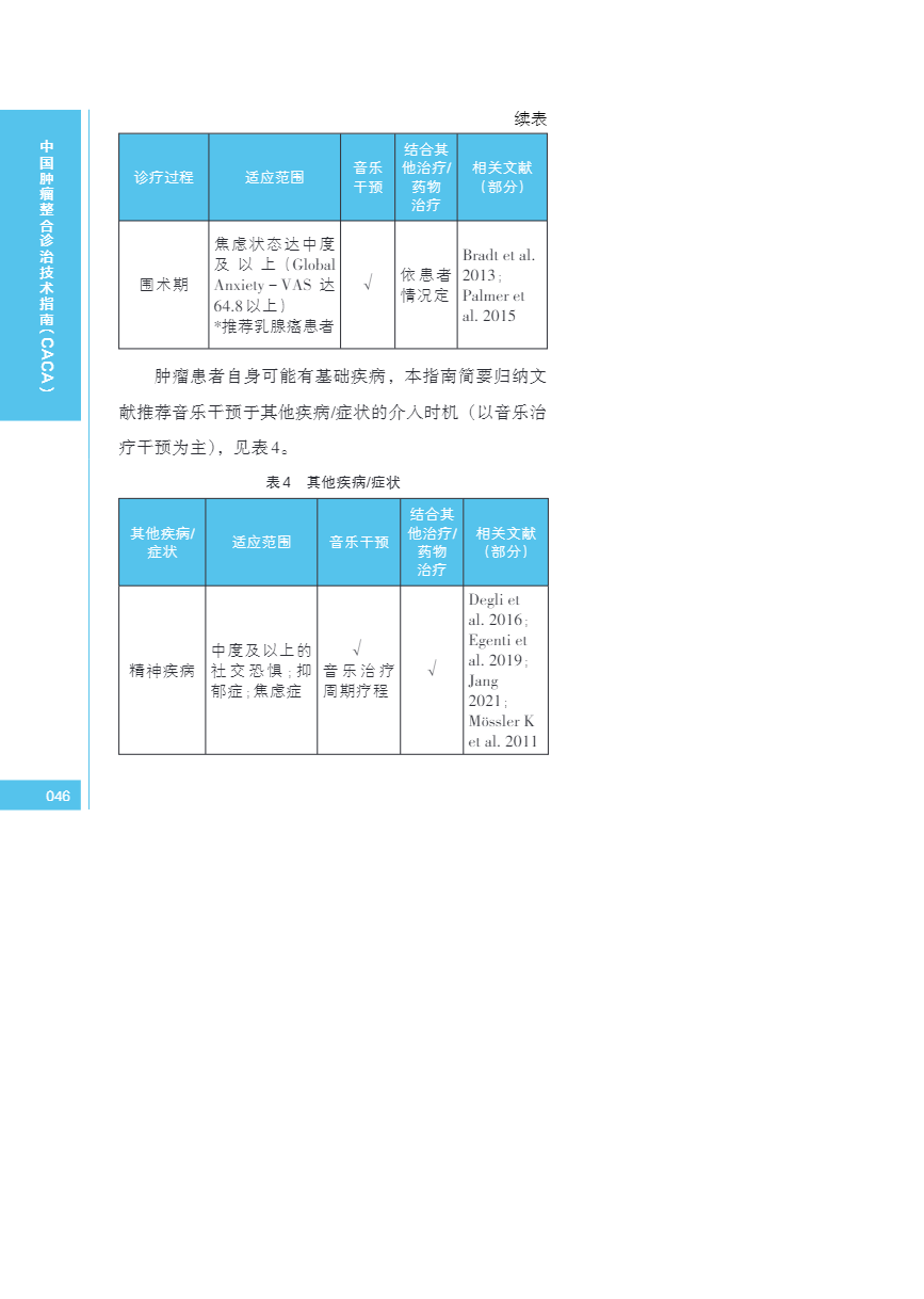 中国肿瘤整合诊治指南(CACA) 音乐干预