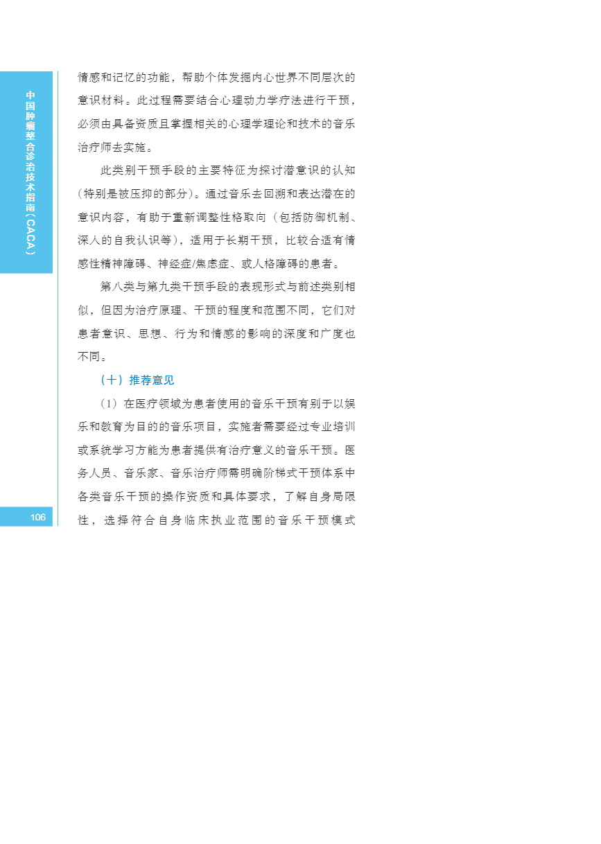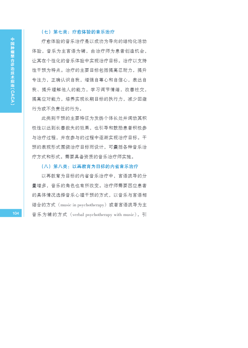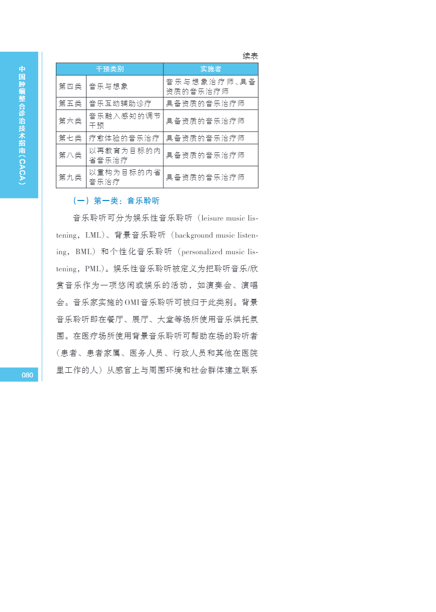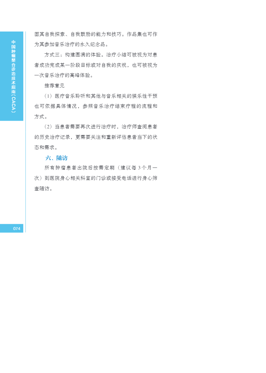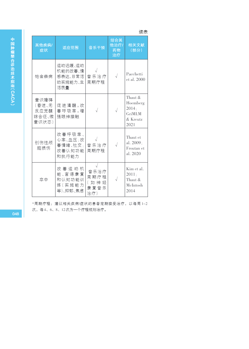 中国肿瘤整合诊治指南(CACA) 音乐干预