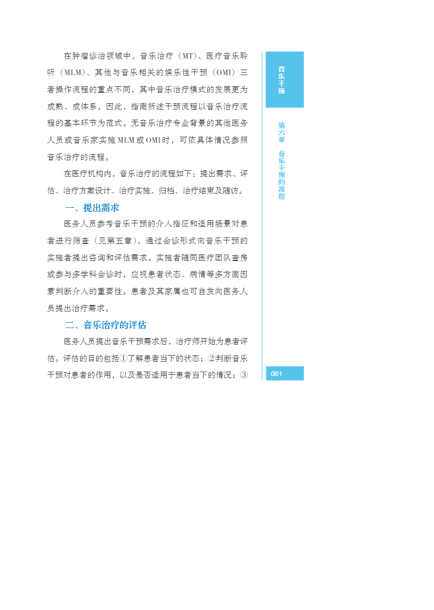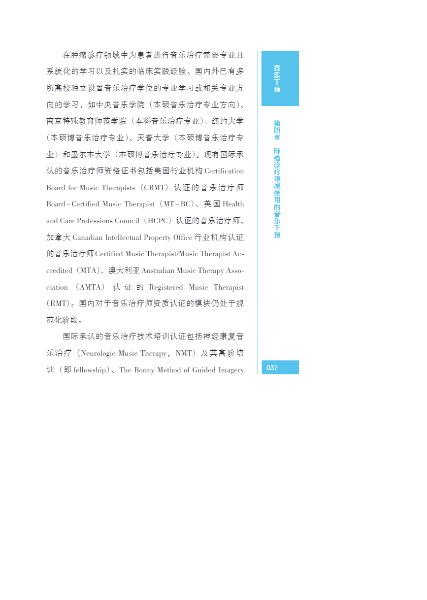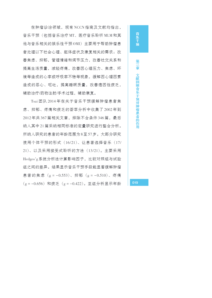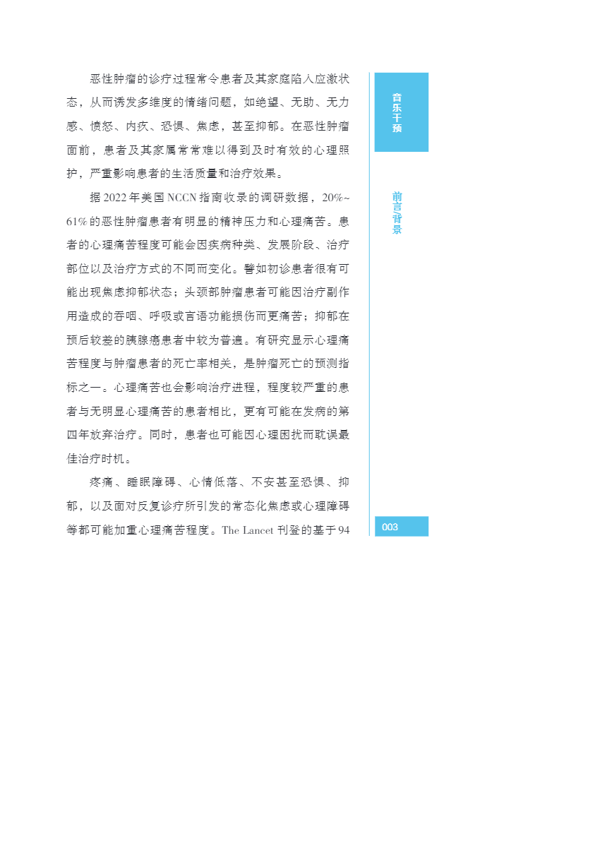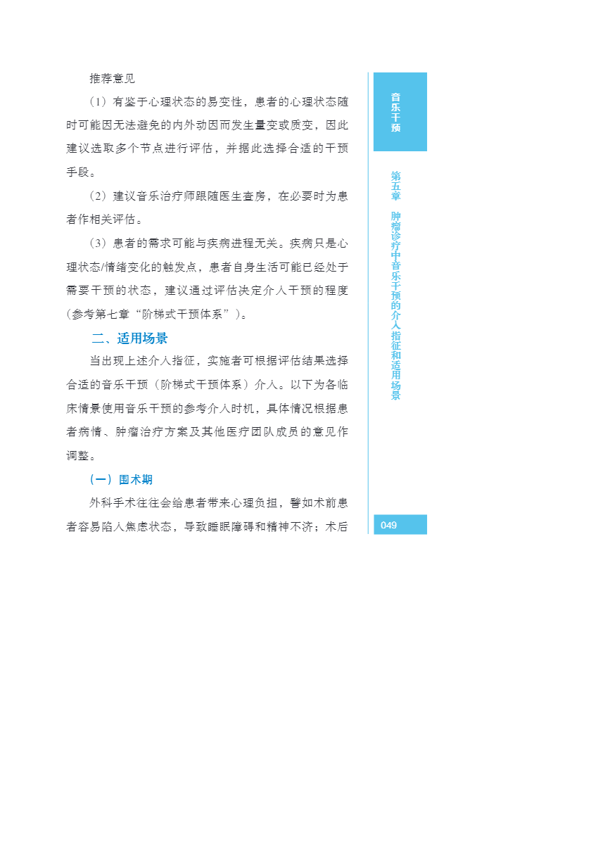中国肿瘤整合诊治指南(CACA) 音乐干预