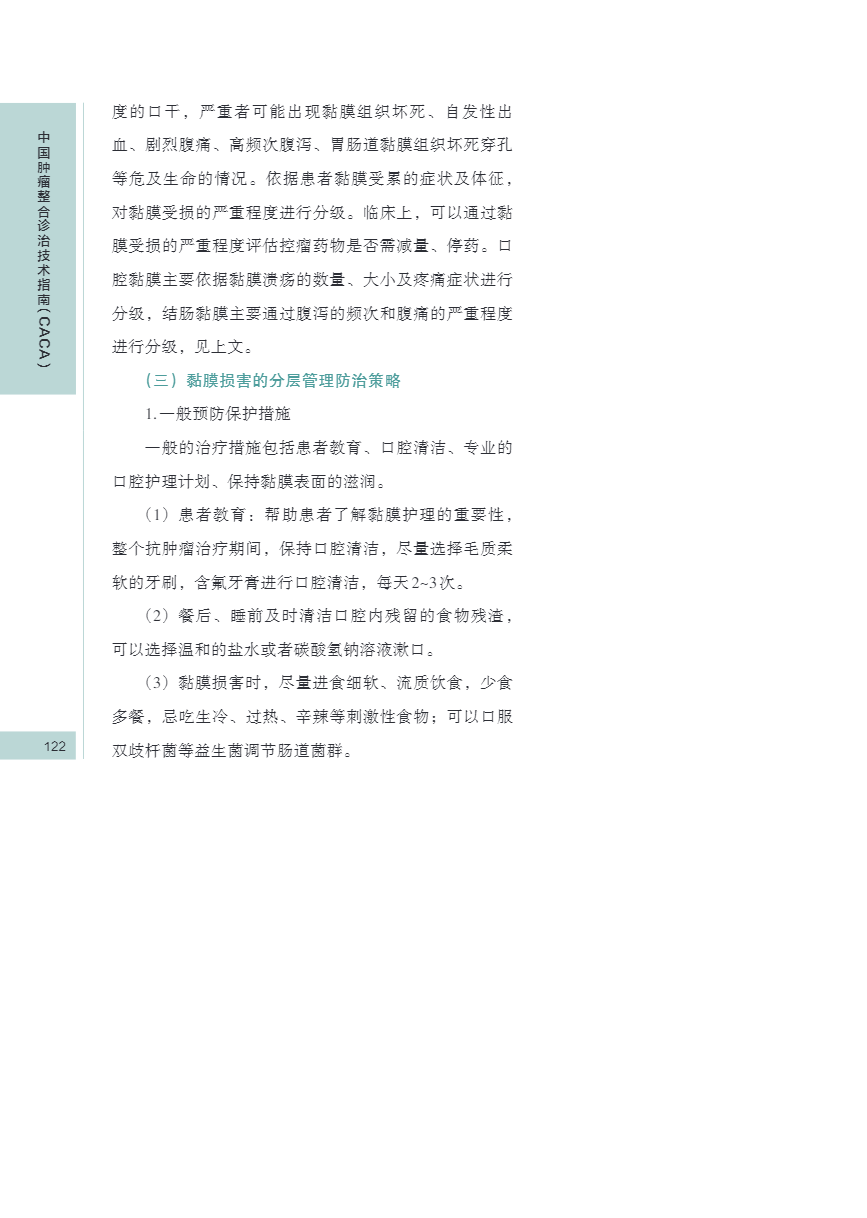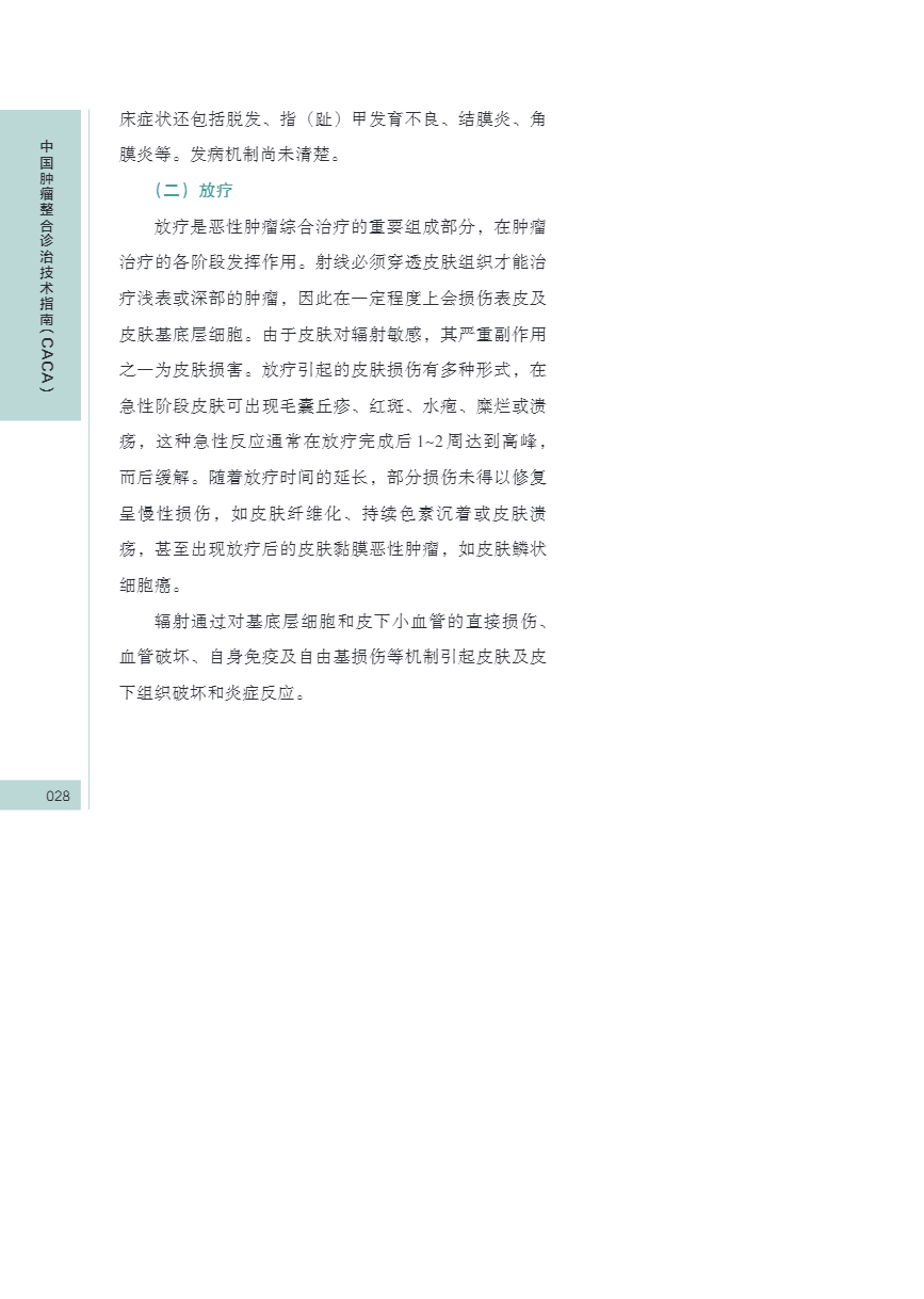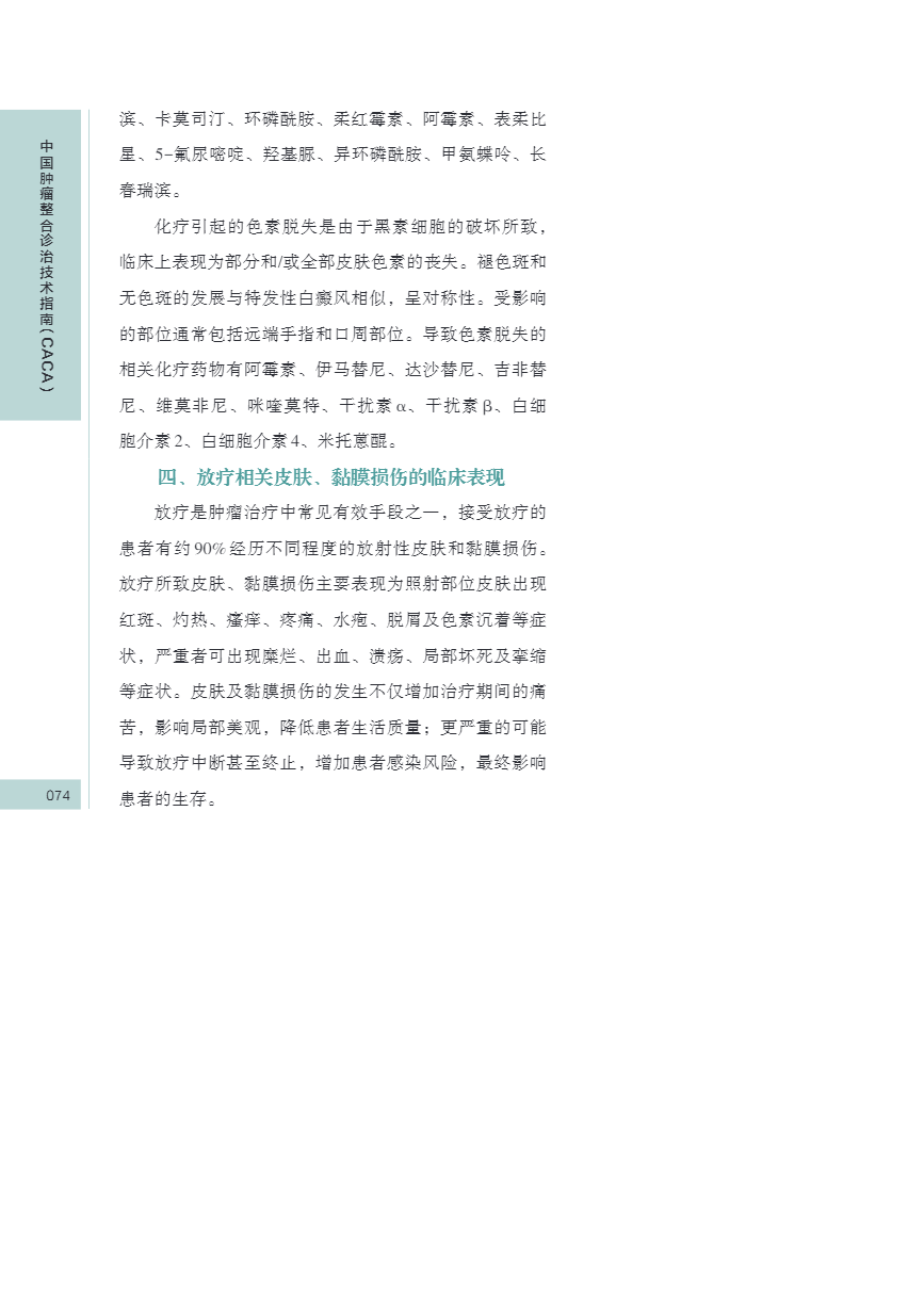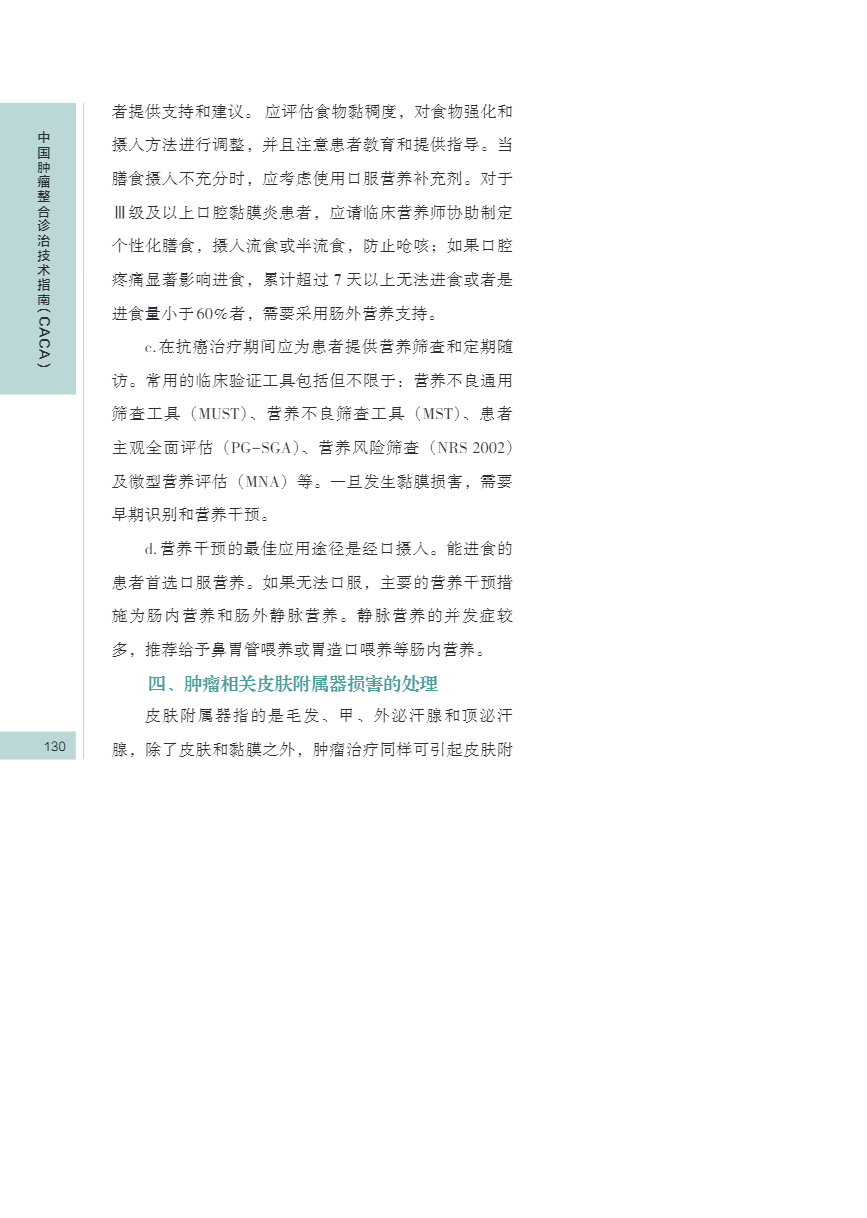 中国肿瘤整合诊治指南(CACA) 皮肤、黏膜保护