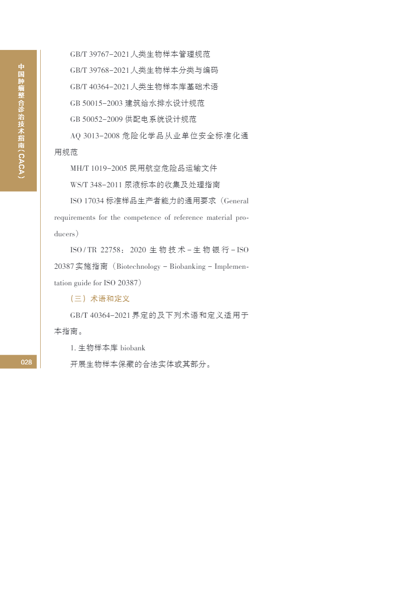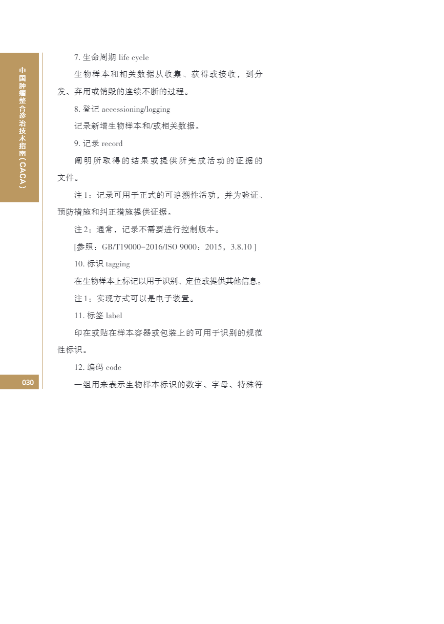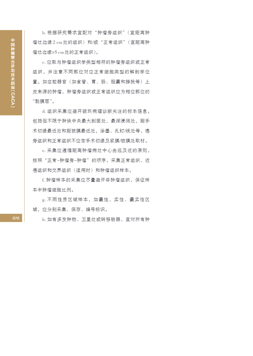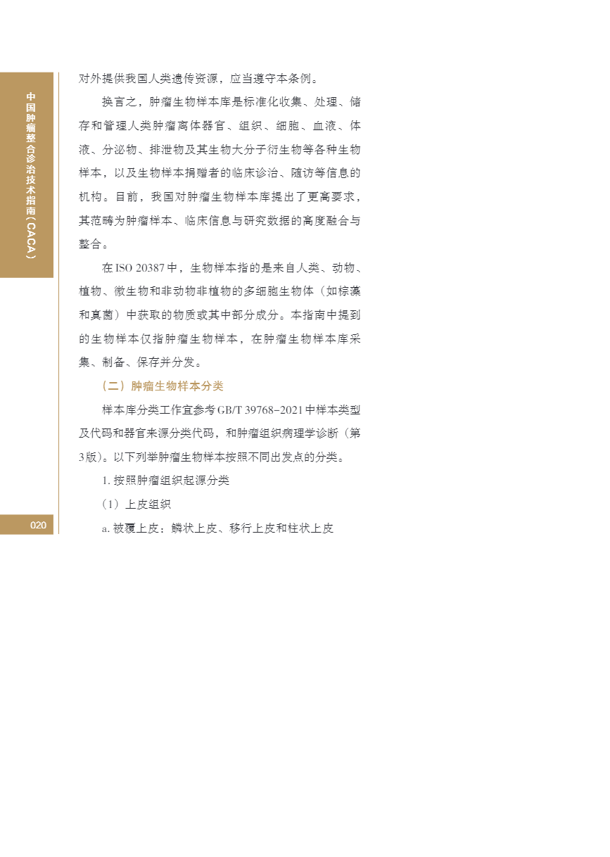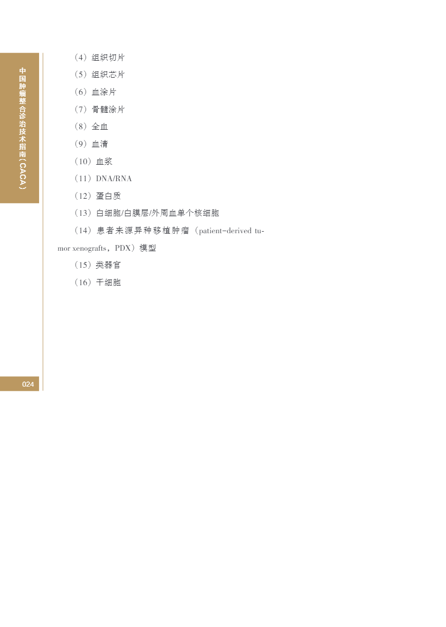 中国肿瘤整合诊治指南(CACA) 生物样本
