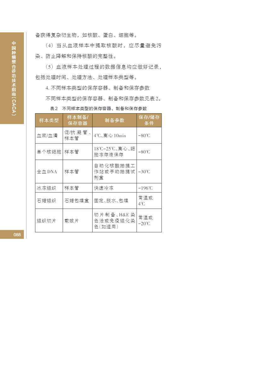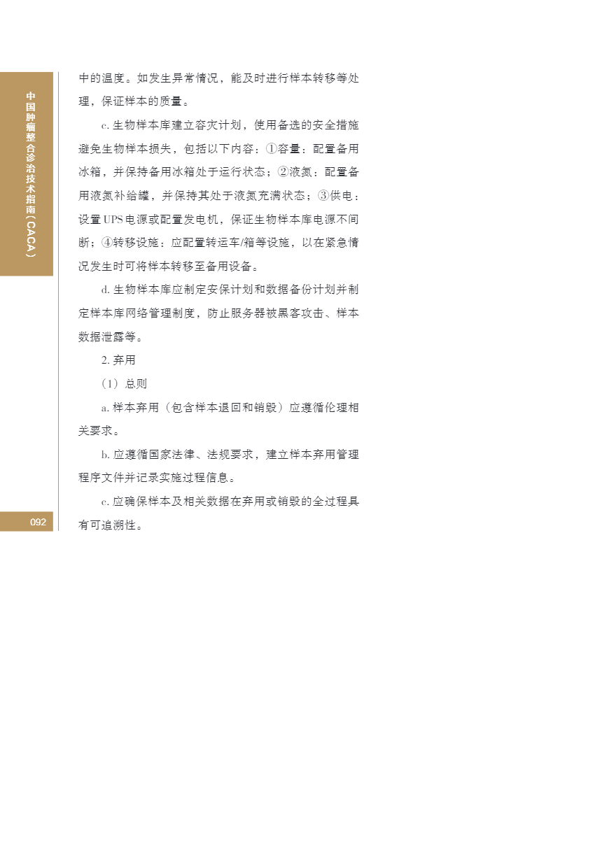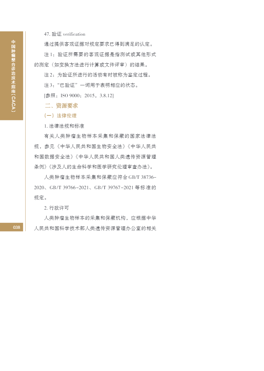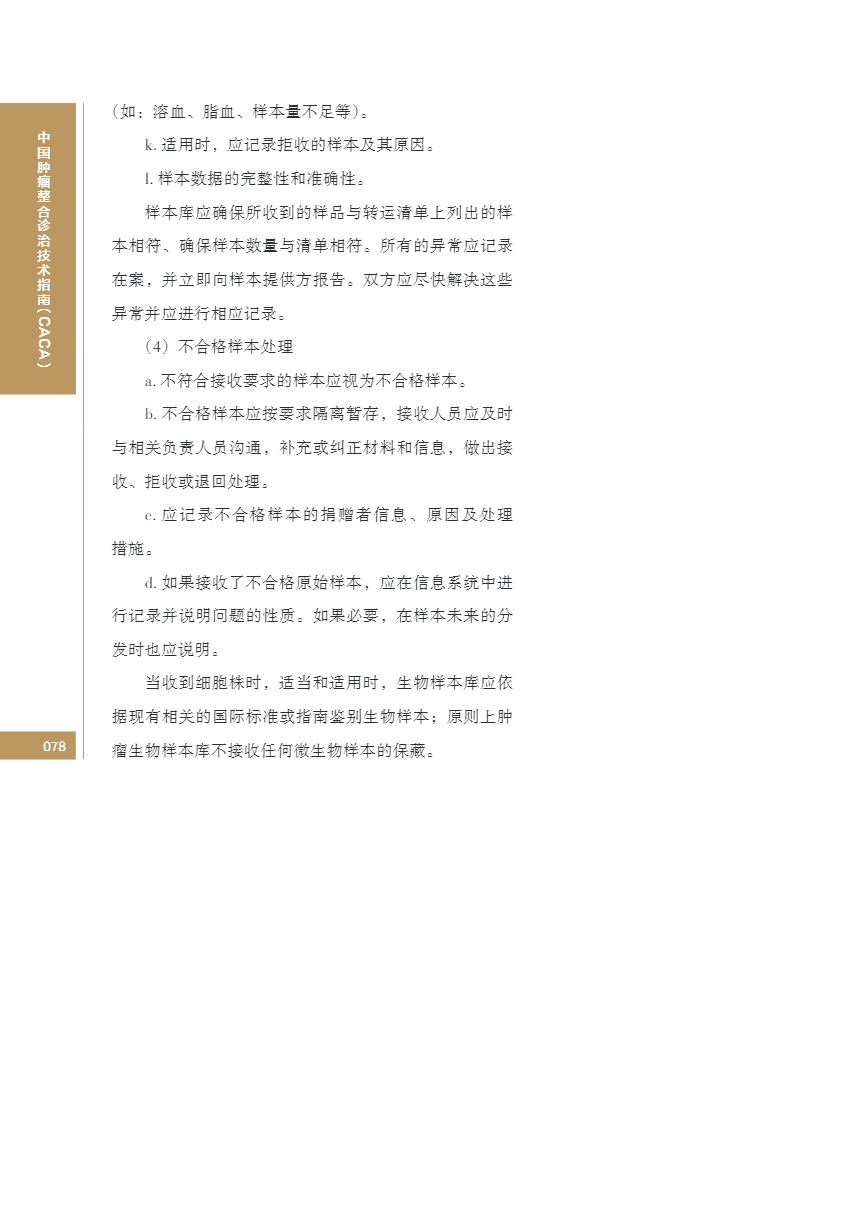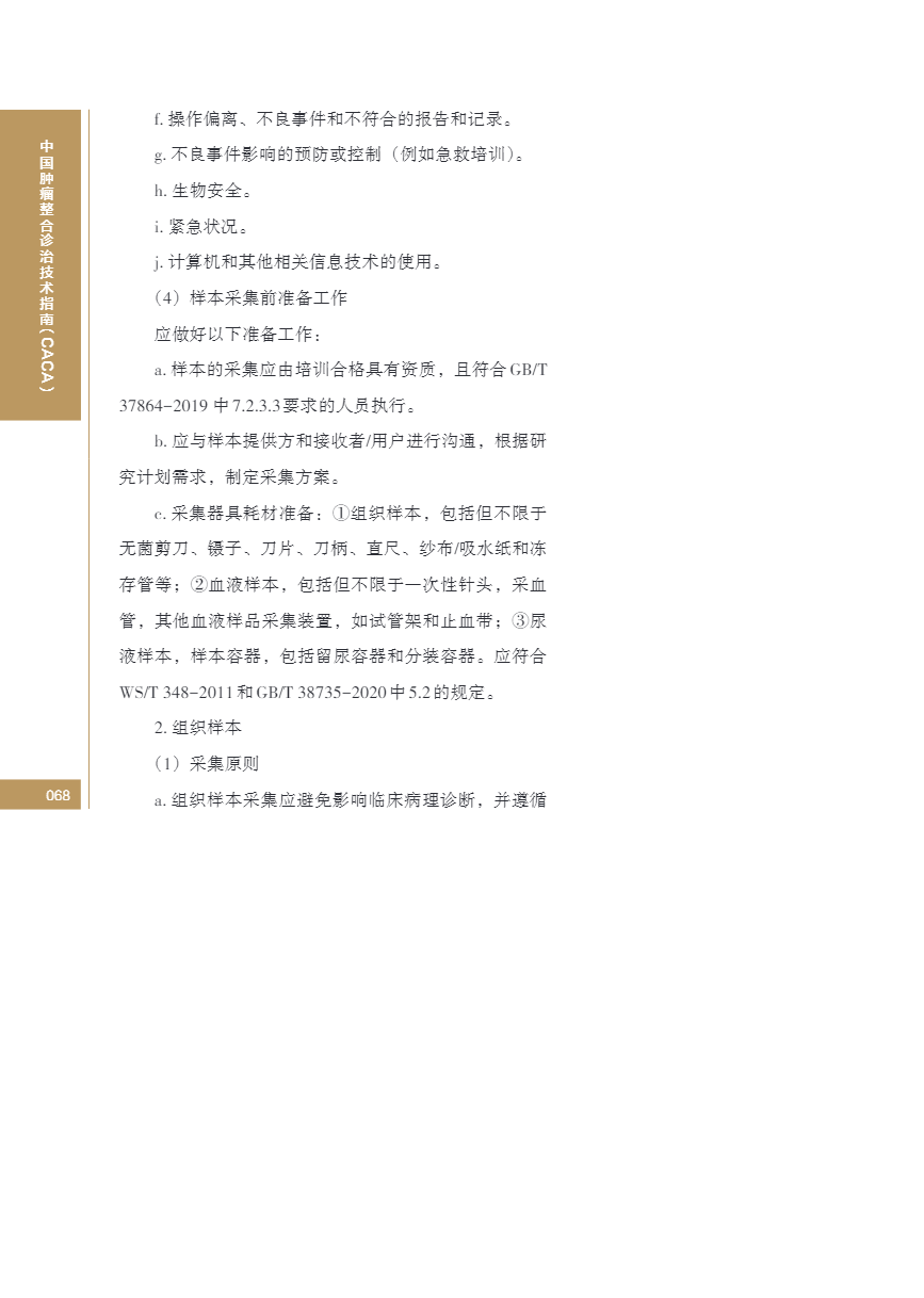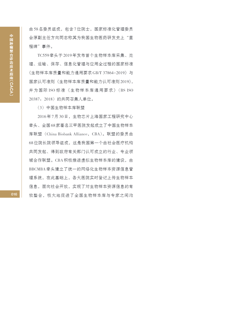 中国肿瘤整合诊治指南(CACA) 生物样本