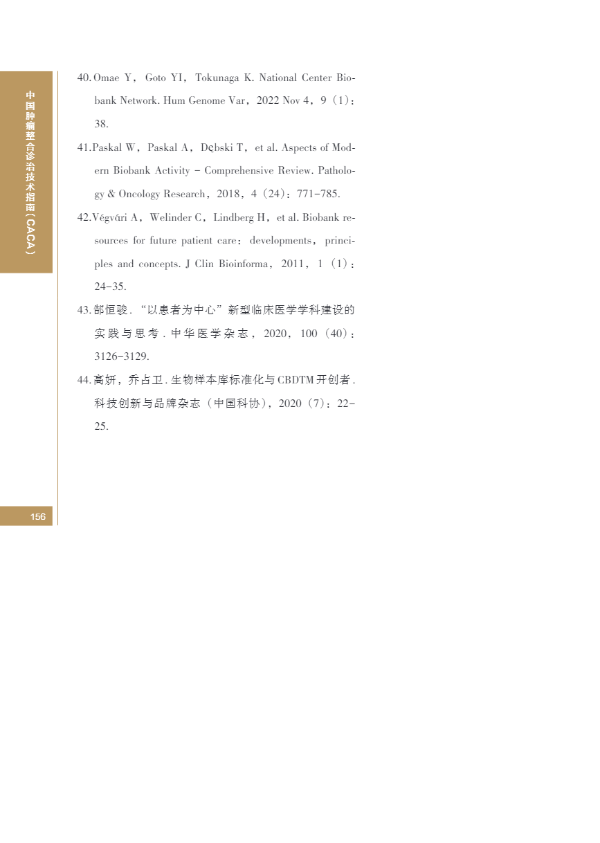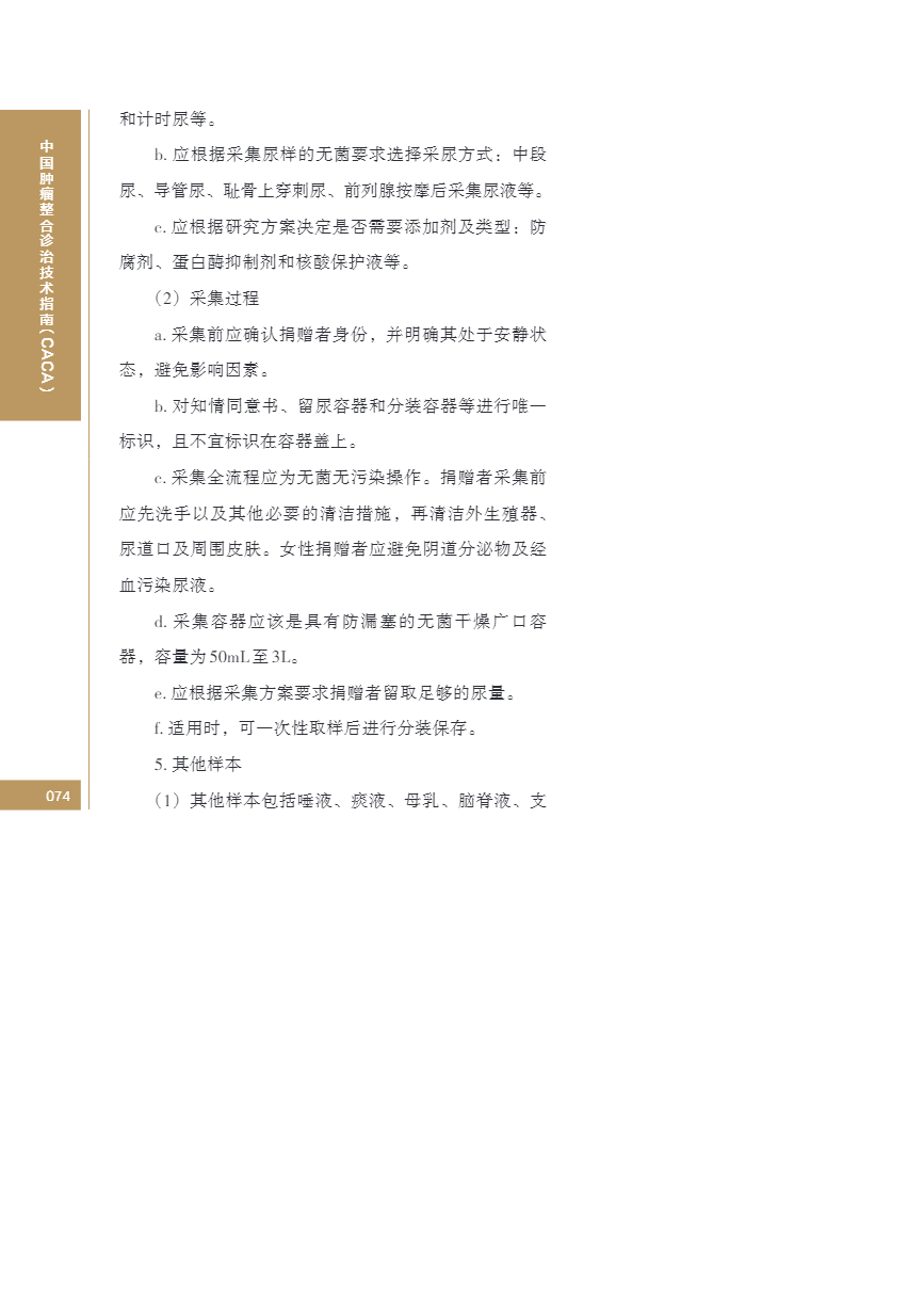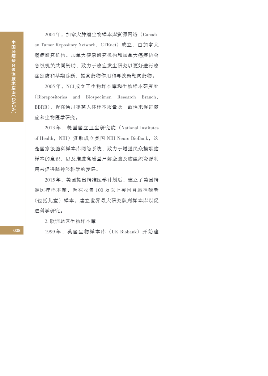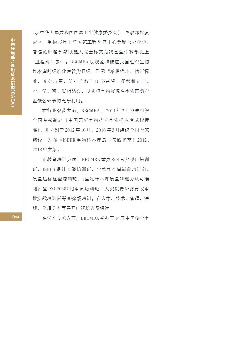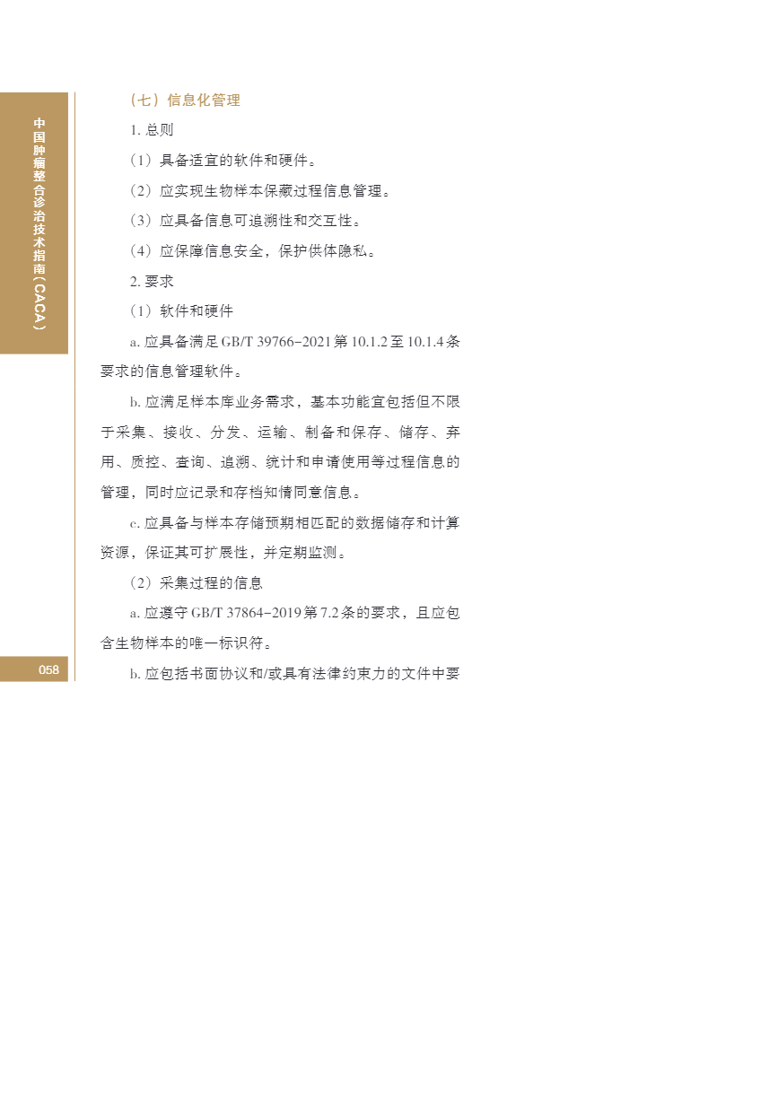中国肿瘤整合诊治指南(CACA) 生物样本