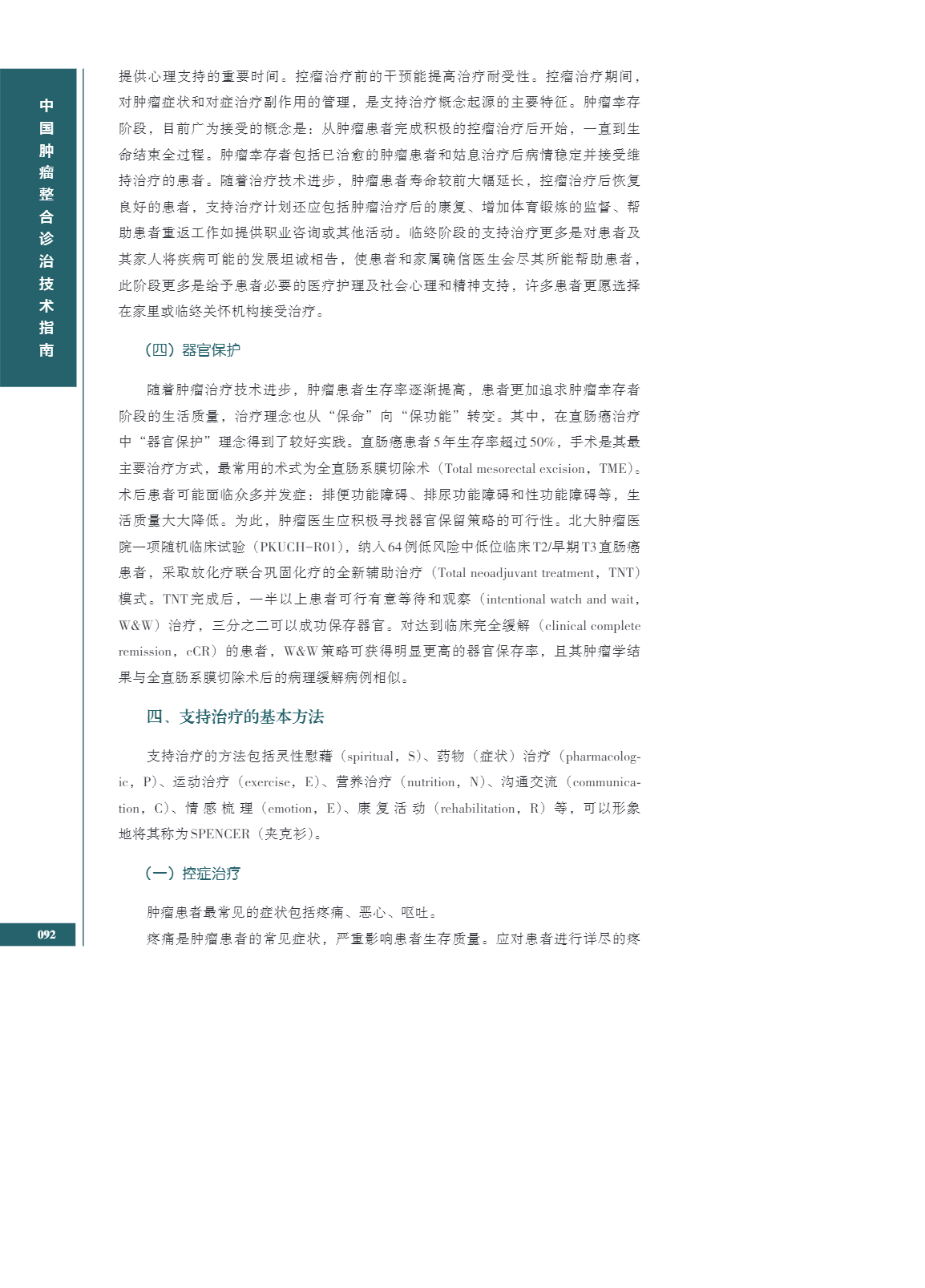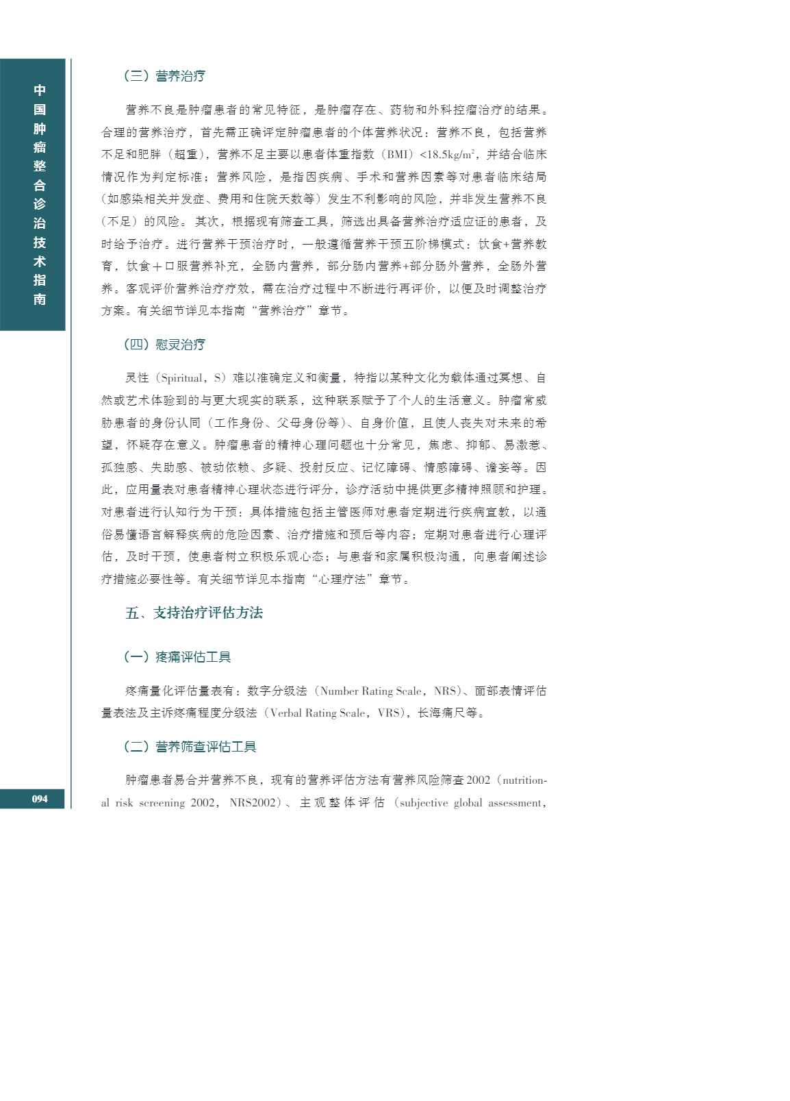 中国肿瘤整合诊治指南(CACA) 整体支持